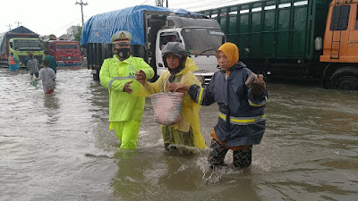 Kasat lantas Polrestabes Semarang, AKBP Sigit, S.I.K., M.H., yang saat ini berada di lokasi kaligawe, Genuk, mengatakan, situasi banjir di wilayah Genuk semakin meningkat, hal ini terpantau sejak pukul 16.15 Wib sore.