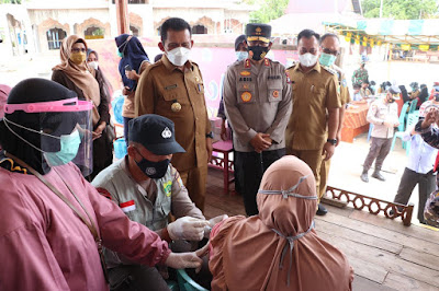 Selanjutnya Gubernur Kepri didampingi Kapolda Kepri bersama rombongan memantau langsung pelaksanaan Vaksinasi kepada masyarakat di halaman gedung Nasional Kabupaten Lingga. Gubernur Kepri mengatakan edukasi terus kita lakukan dan meminta dukungan teman-teman TNI Polri, Tokoh Masyarakat, Tokoh Agama dan Alim Ulama untuk terus menghimbau masyarakat bahwa vaksinasi yang kita laksanakan ini sudah ada jaminan dari Majelis Ulama Indonsia aman dan halal. Vaksin ini untuk menjaga masyarakat agar imunitasnya kuat.
