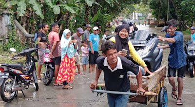 Menurut Yudi banjir diakibatkan hujan pada Minggu dini hari, sehingga air meluap dari sungai cijalu yang tidak muat menampung air hujan. Masih kata Yudi, dirinya dengan beberapa rekannya menyediakan jasa angkut sepada motor yang hendak menyebrangi area banjir dengan memasang tarif seharga 20 ribu rupiah. Sebagian warga ada Yeng memilih jalan lewat jalur Karangbenda tepatnya lewat jalan Bojong makan untuk menghindari banjir, pungkasnya. (AS)*